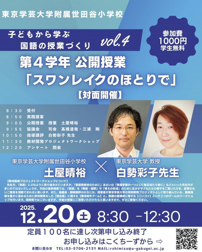 【対面開催・附属世田谷小学校】世田谷国語研究会 Vol.1「子どもから学ぶ国語科授業づくり」 2024年7月13日 - こくちーずプロ (kokuchpro.com)